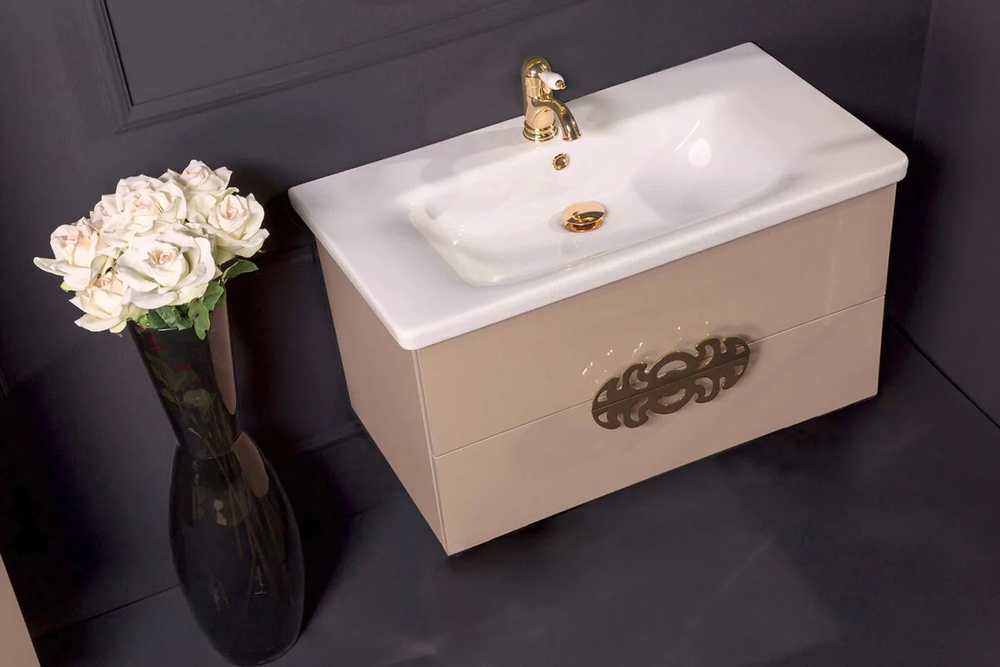 Тумба под раковину Размер: 100 x 43.5 x 48 см Монтаж: подвесной Ящики выдвижные: 2 Система плавного закрывания Материал: МДФ Форма: прямоугольная Цвет: капучино