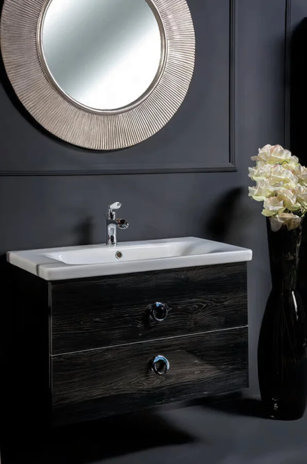 Тумба под раковину Armadi Art NeoArt 80 см подвесная, black wood, 830-080-BW