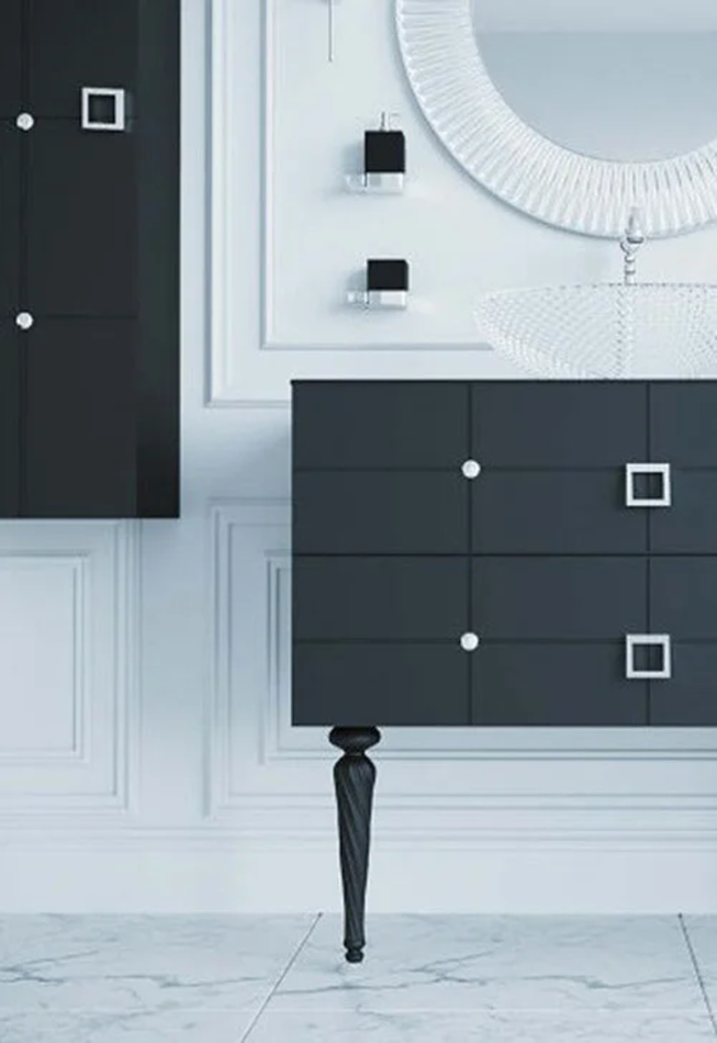 Тумба под раковину Размер: 100 x 46 x 38 см Монтаж: подвесной Ящики выдвижные: 2 Система плавного закрывания Материал: МДФ Форма: прямоугольная Цвет: черный, хром
