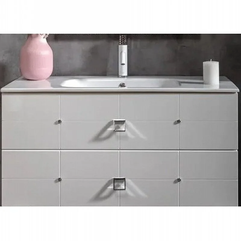 Тумба под раковину Размер: 80 x 46 x 38 см Монтаж: подвесной Ящики выдвижные: 2 Система плавного закрывания Материал: МДФ Форма: прямоугольная Цвет: белый, хром