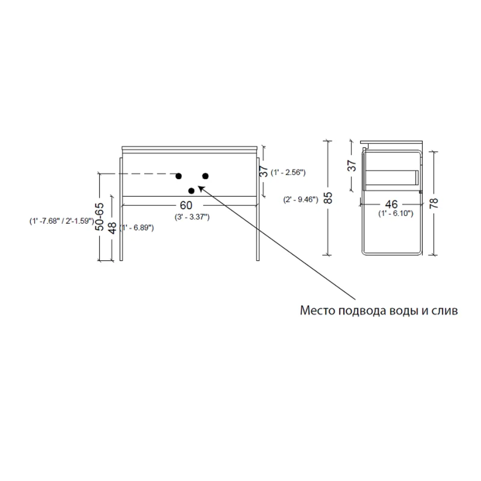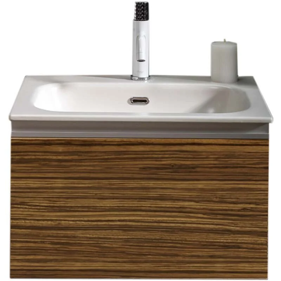 Тумба под раковину Размер: 60 x 46 x 53 см Монтаж: подвесной Ящики выдвижные: 1 Система плавного закрывания Форма: прямоугольная Материал: МДФ Цвет: зебрано