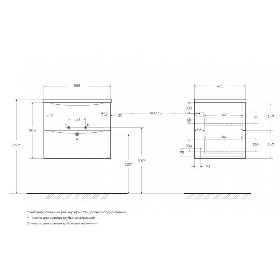 Тумба под раковину Belbagno Acqua 60 cм подвесная, Bianco Lucido, ACQUA-600-2C-SO-BL
