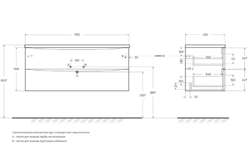 Тумба под раковину BelBagno Acqua ACQUA-1200-2C-SO-BL 120 см, подвесная, цвет белый глянцевый (bianco lucido)