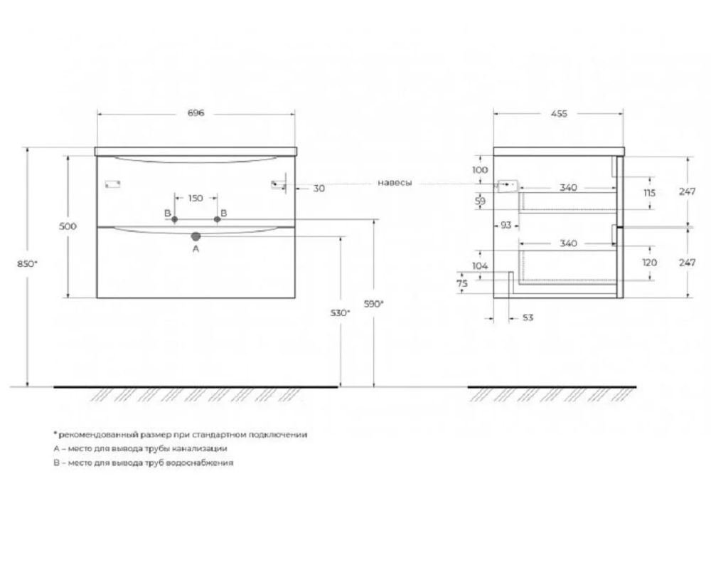 Тумба под раковину BelBagno Acqua ACQUA-700-2C-SO-RR 70 см, подвесная, цвет дуб рустик (rovere rustico)