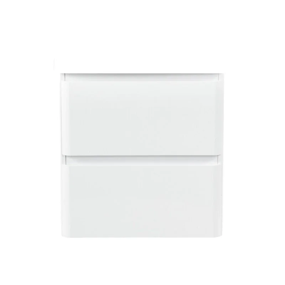 Тумба подвесная с двумя выкатными ящиками. Два выдвижных ящика с фрезерованными ручками в плоскости фасада. Ящики оснащены доводчиками скрытого монтажа с системой soft close (плавного закрывания).
