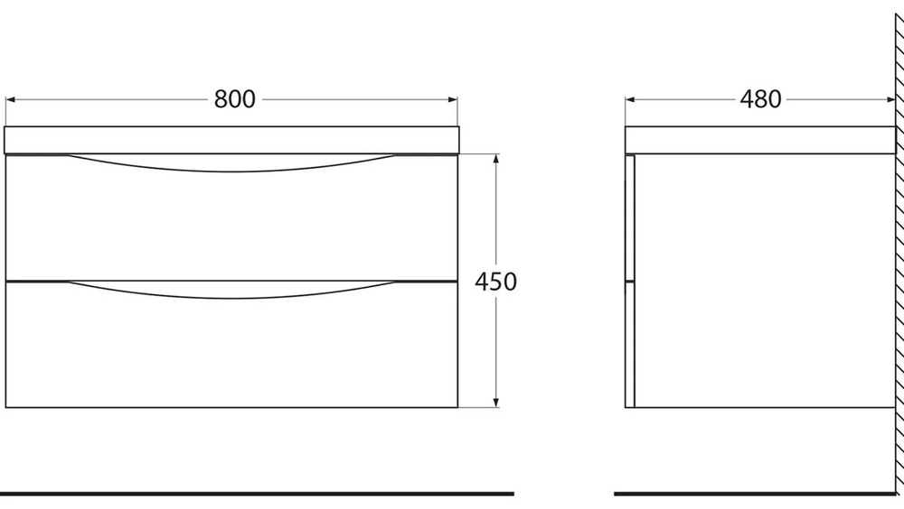 База под раковину подвесная с двумя выкатными ящиками, с доводчиками C врезной (фрезерованной) ручкой в плоскости фасада
