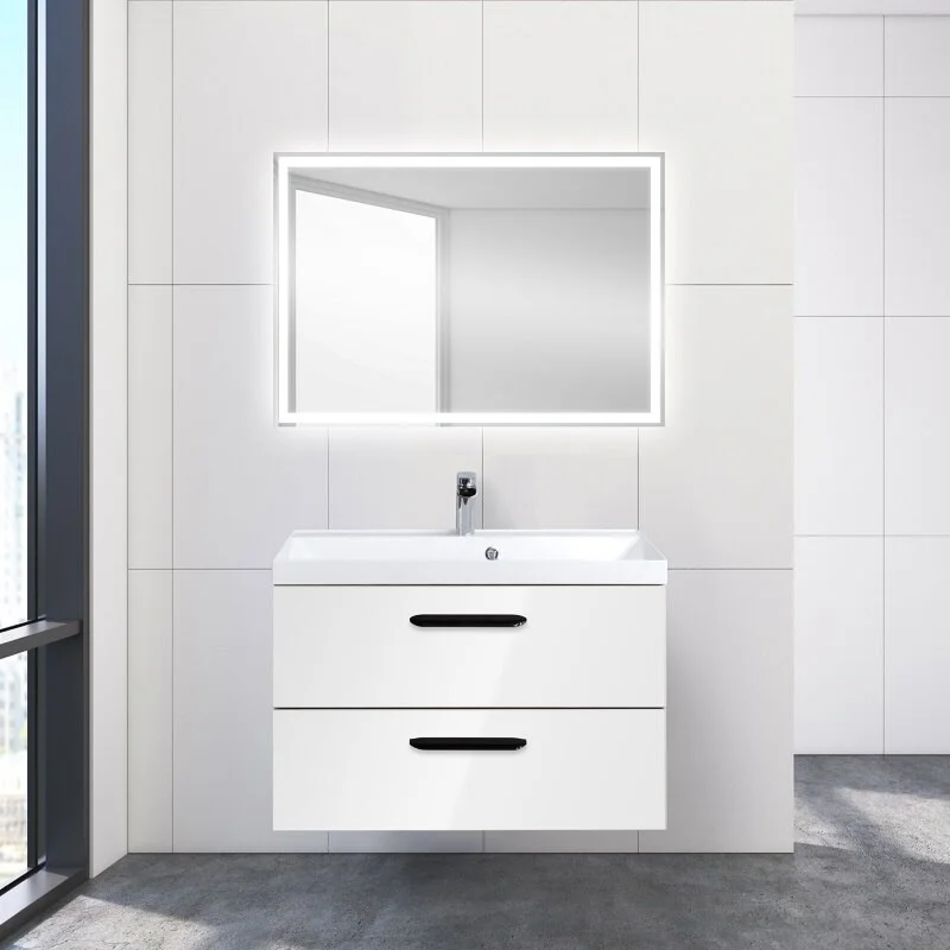 Тумба под раковину BelBagno Aurora 80 см, подвесная, цвет Bianco Lucido, Aurora-800-2C-SO-BL