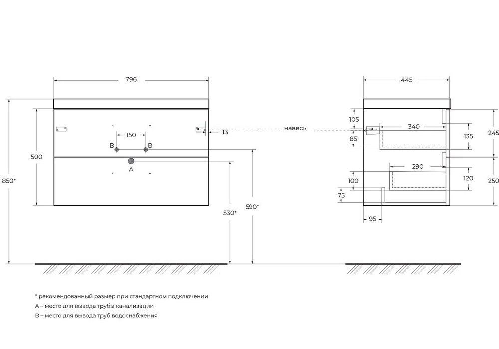 База под раковину c накладными ручками, ручки приобретаются отдельно.