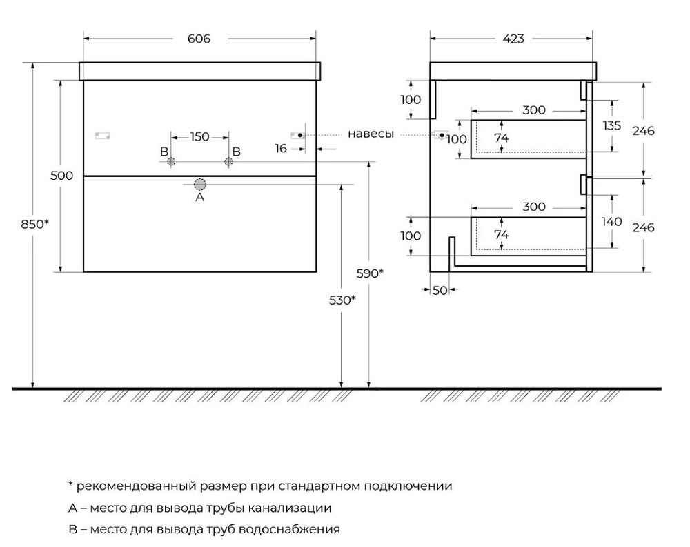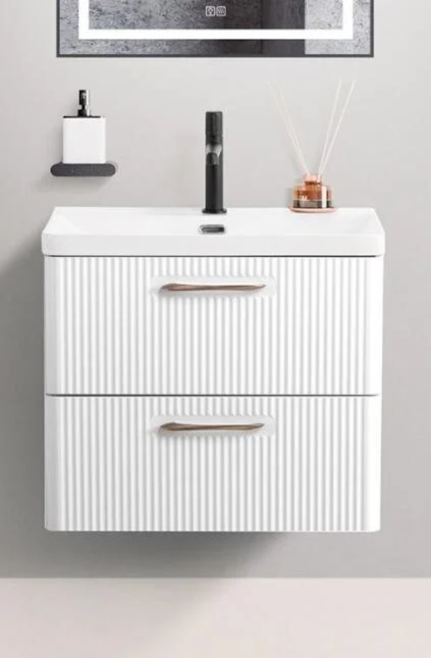 Тумба под раковину BelBagno Due-600-2C-SO-BL-P, 60 см, подвесная, Bianco Lucido