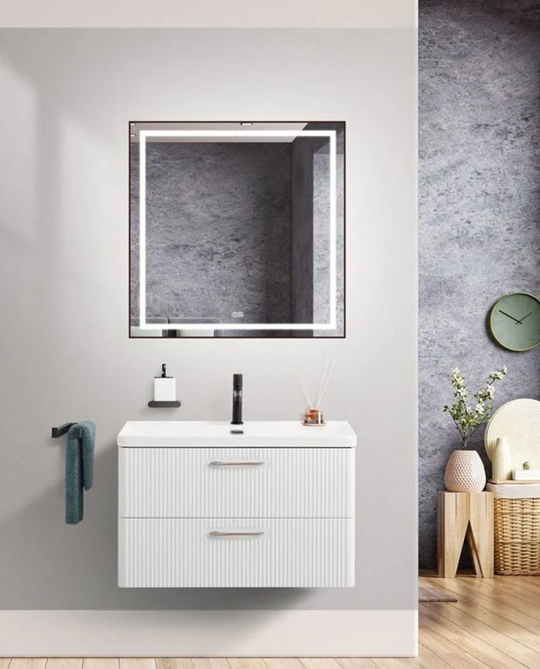 Тумба под раковину BelBagno Due-800-2C-SO-BM-P, 80 см, подвесная, белый металлик