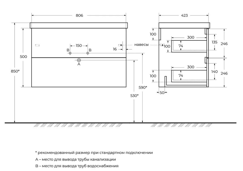 Тумба под раковину BelBagno Due-800-2C-SO-RN-P, 80 см, подвесная, Rovere Nature