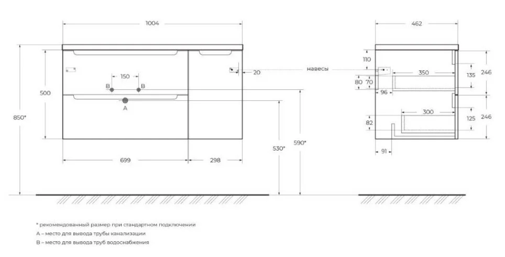 Тумба под раковину BelBagno Etna-1000-2C-1A-SO-RN-L, 100 см, подвесная, Rovere Nature, левая