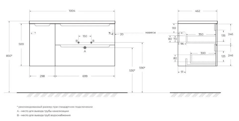Тумба под раковину BelBagno Etna-1000-2C-1A-SO-RN-R, 100 см, подвесная, Rovere Nature, правая