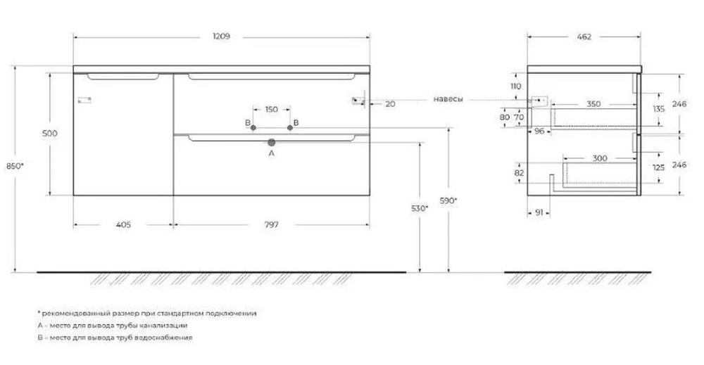 Тумба под раковину (раковина с чашей справа)