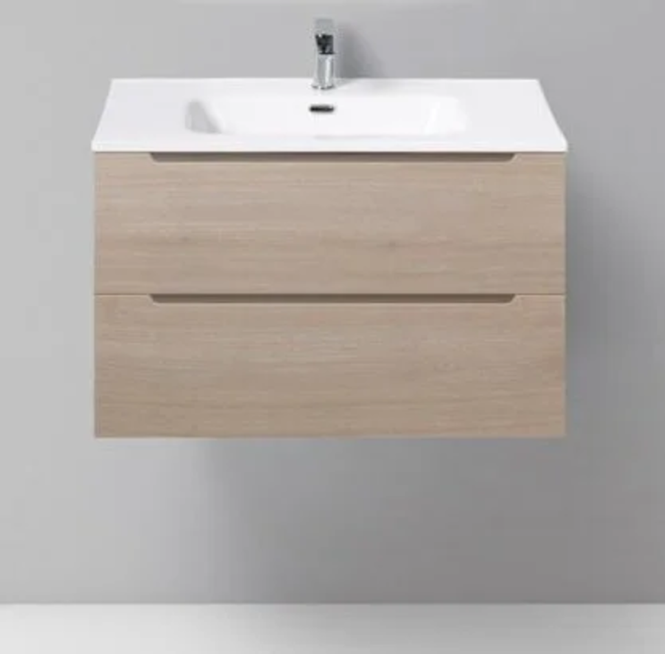 Тумба под раковину подвесная Размер: 80 x 45.5 x 50 см Ящики выдвижные: 2 С механизмом плавного закрывания Ручки скрыты в плоскости фасада Материал: МДФ Покрытие: пленка Форма: прямоугольная Цвет: серый дуб (rovere grigio)
