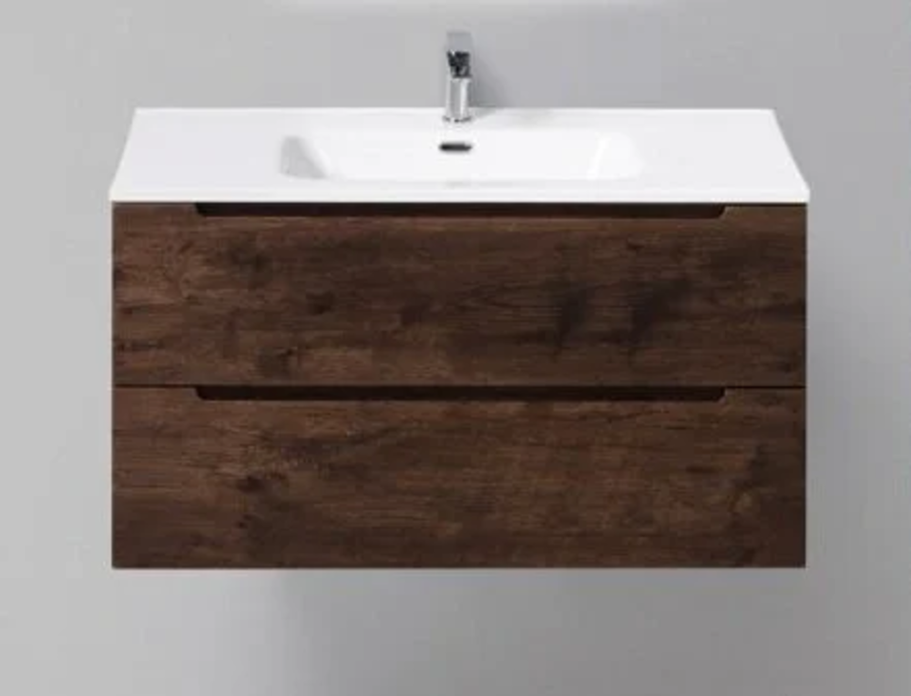 Тумба под раковину подвесная Размер: 91 x 46 x 51.5 см Ящики выдвижные: 2 Доводчики с механизмом плавного закрывания Ручки скрыты в плоскости фасада Материал: МДФ Покрытие: пленка Форма: прямоугольная Цвет: темный дуб
