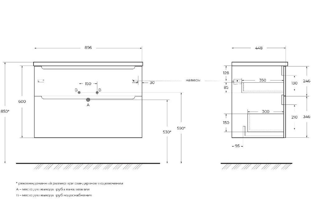 Увеличенная глубина нижнего ящика, большая вместимость по сравнению с базами стандартных размеров.
