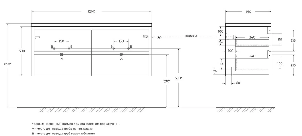 Тумба под раковину (раковина с 2 чашами)
