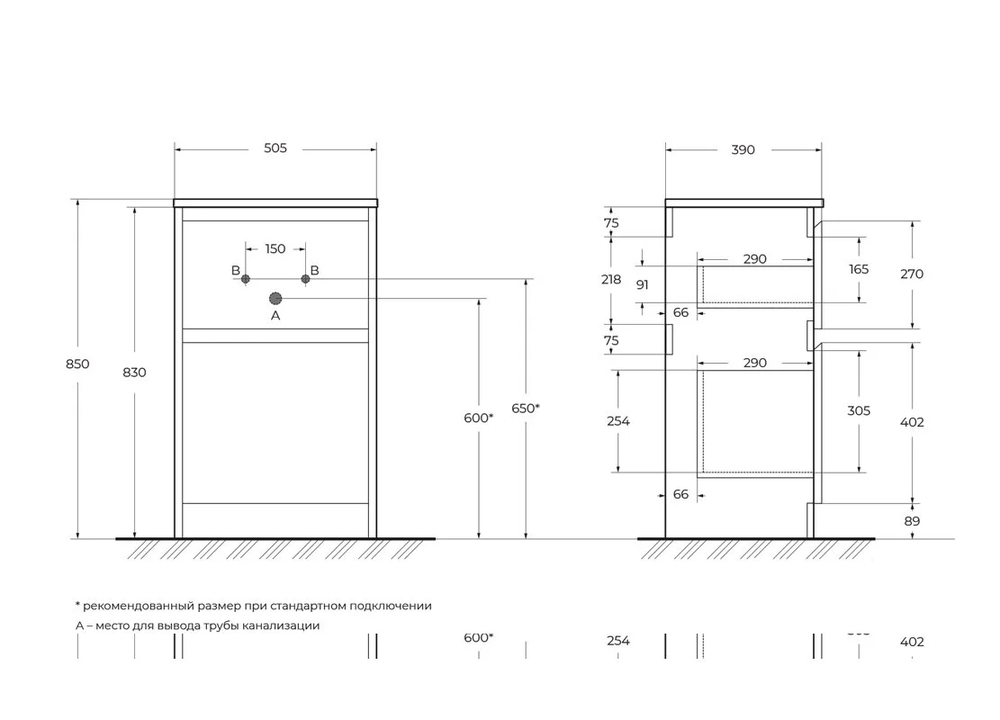 Тумба под раковину BelBagno Kraft 39 50 см, напольная, Rovere Tabacco, KRAFT39-500/390-2C-PIA-RT