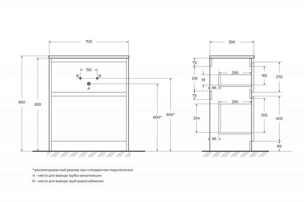 Тумба под раковину BelBagno Kraft 39 70 см, напольная, Rovere Tabacco, KRAFT39-700/390-2C-PIA-RT