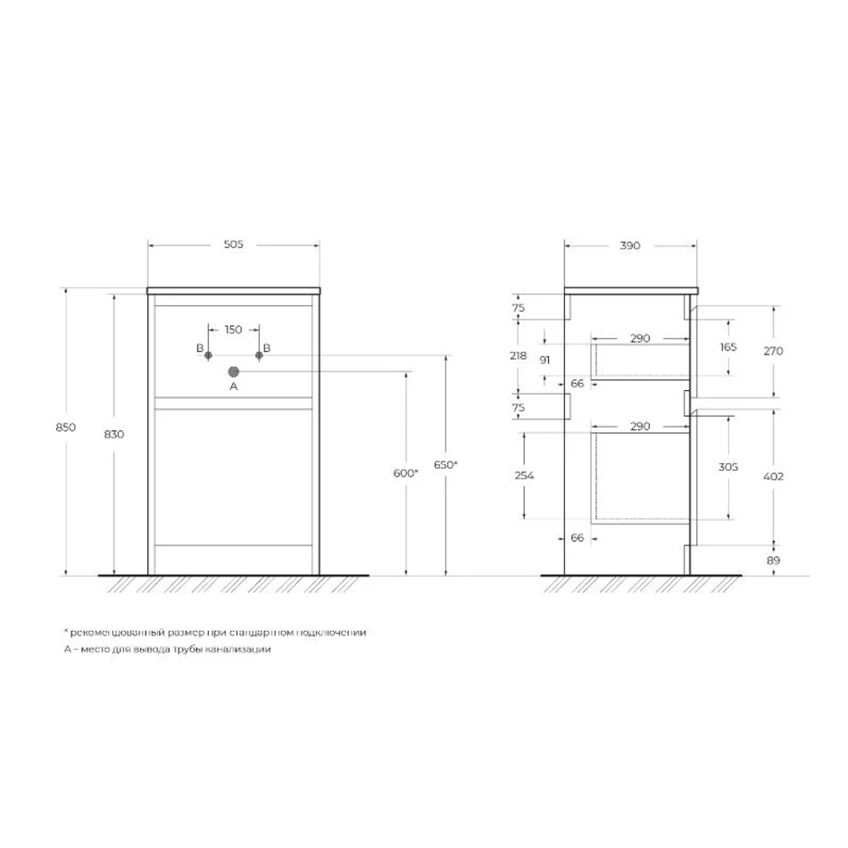 Тумба под раковину BelBagno Kraft 39 KRAFT39-500/390-2C-PIA-BO, 50 см, напольная, цвет Bianco Opaco