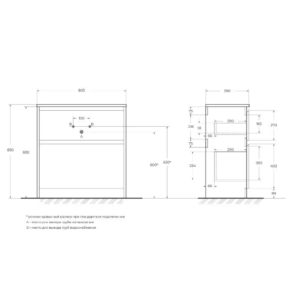 Тумба под раковину BelBagno Kraft 39 KRAFT39-800/390-2C-PIA-BO, 80 см, напольная, цвет Bianco Opaco