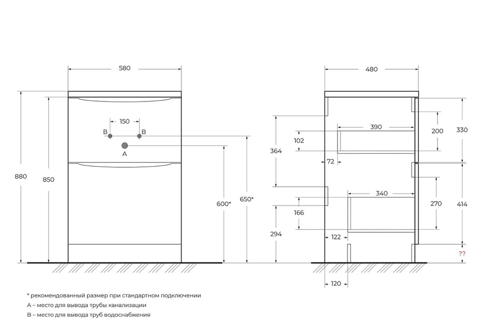 Габариты корпуса тумбы (ШхВхГ): 580х860х480 мм.