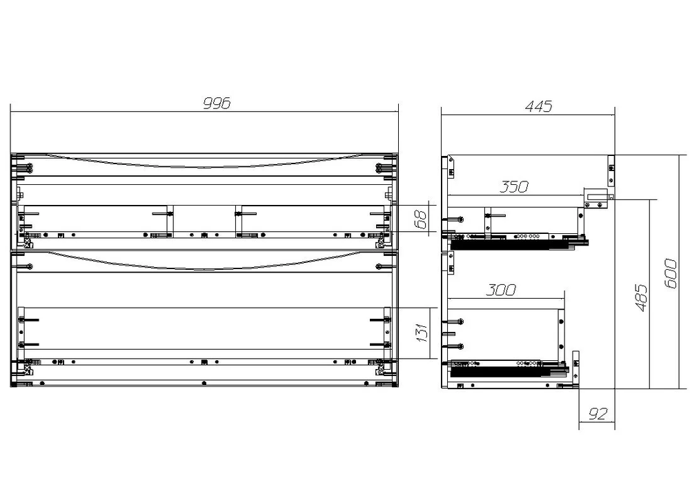 Увеличенная глубина нижнего ящика, большая вместимость по сравнению с базами стандартных размеров