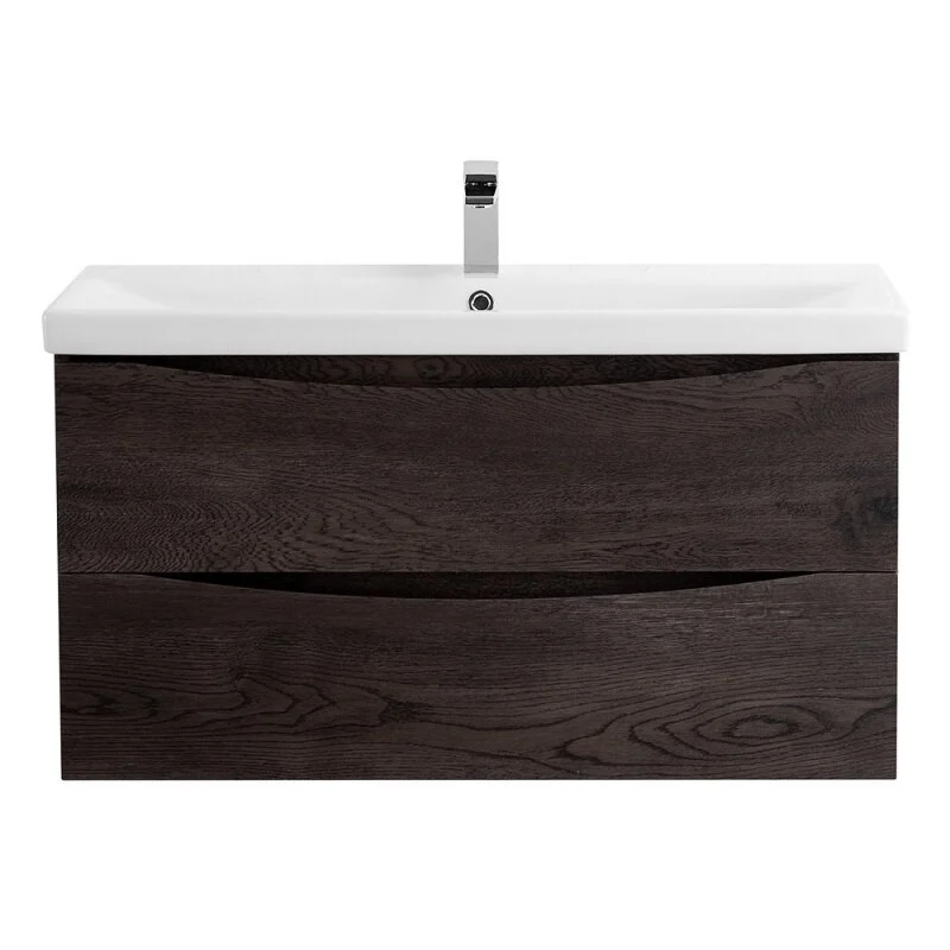 Тумба подвесная с двумя выкатными ящиками. Два выдвижных ящика с фрезерованными ручками по всей длине фасада. Ящики оснащены доводчиками скрытого монтажа с системой Soft close (плавного закрывания).