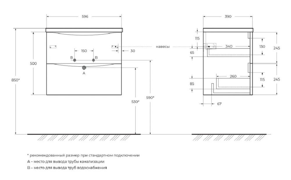Тумба под раковину BelBagno Marino-Cer-Mini-600-2C-SO-WO-P, 60 см, подвесная, Rovere Bianco