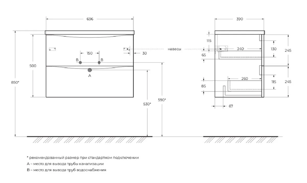 Тумба под раковину BelBagno Marino-Cer-Mini-700-2C-SO-BL-P, 70 см, подвесная, Bianco Lucido