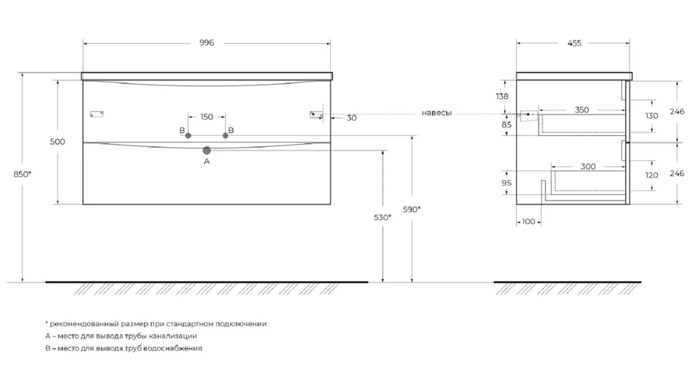 Тумба под раковину BelBagno Marino-Cer-N-1000-2C-SO-WO-P, 100 см, подвесная, Rovere Bianco