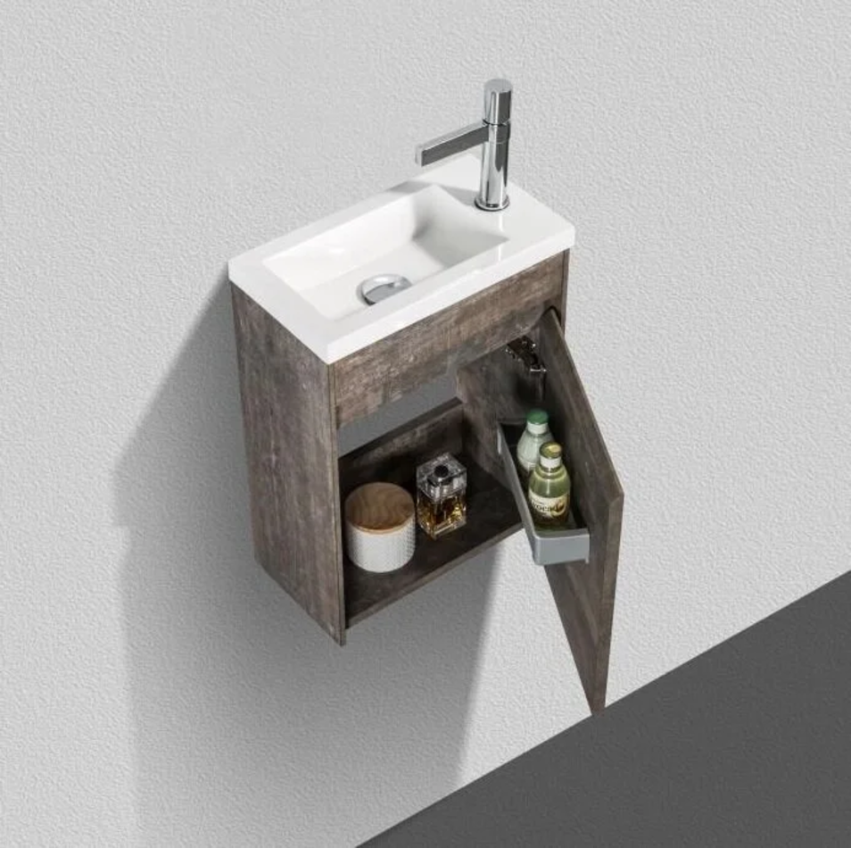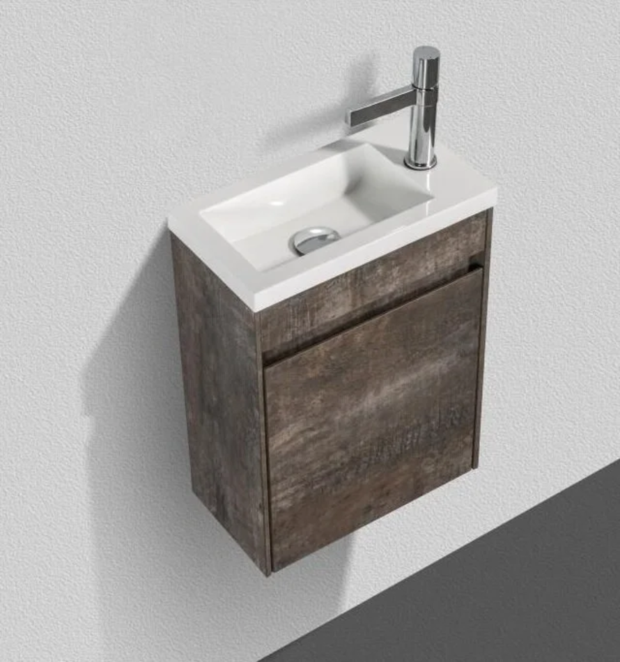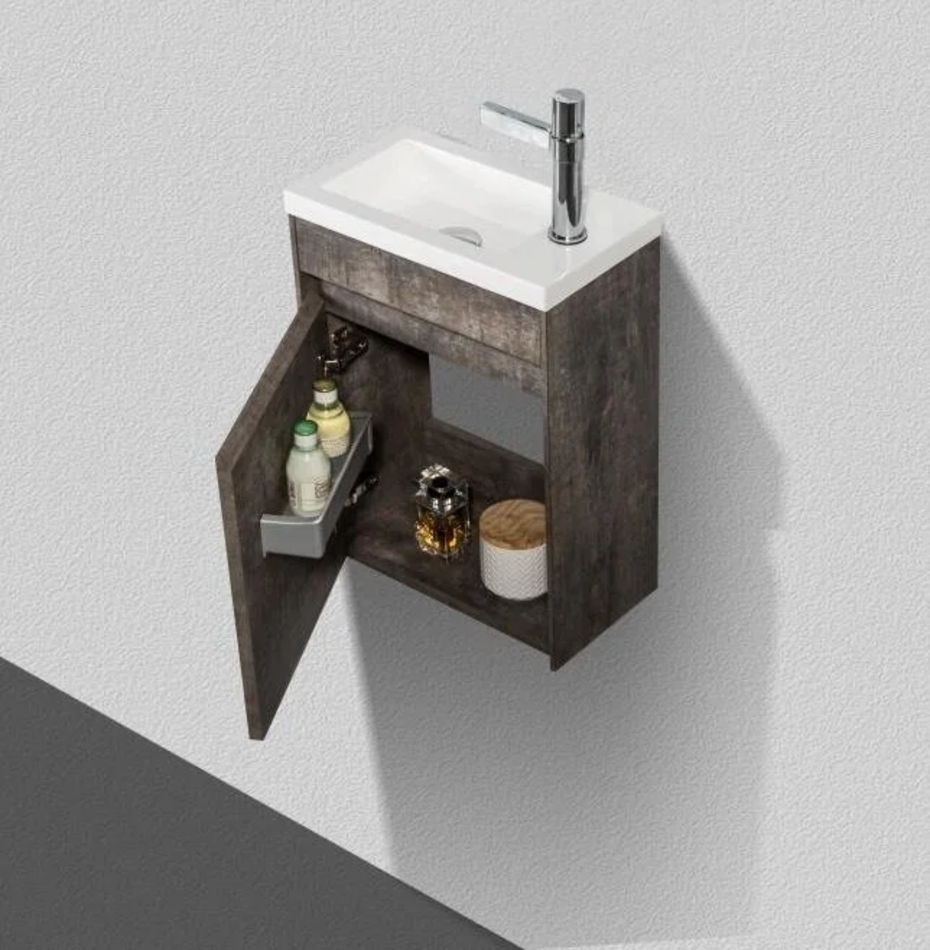 Тумба под раковину L/R Размер: 40 x 22 x 52 см Монтаж: подвесной Двери распашные: 1 Ориентация: петли слева/ петли справа Доводчики Форма: прямоугольная Материал: влагостойкий ДСП Цвет: коричневый (Stone)