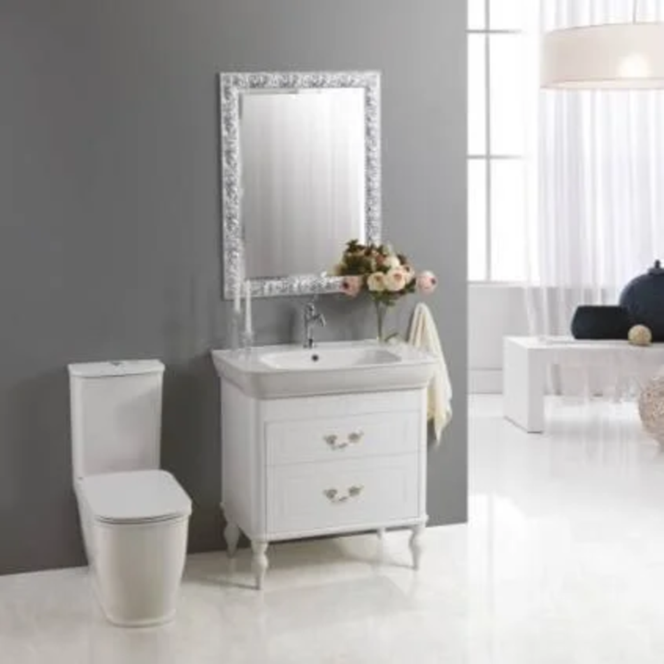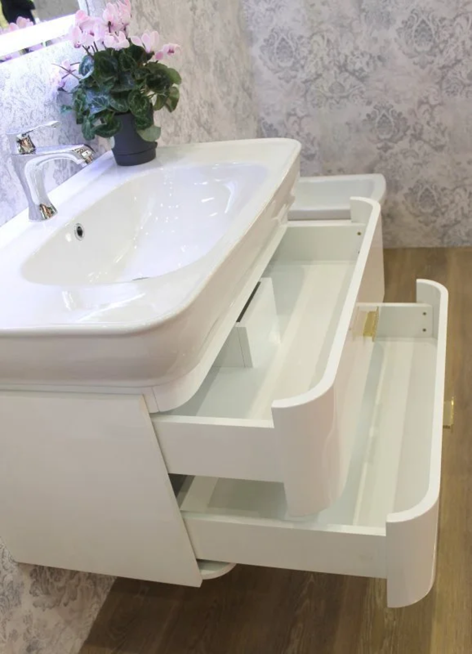 монтаж: напольный с двумя выдвижными ящиками резные ножки, резной декор на фасаде размер тумбы: 715x440x760 мм доступные отделки фасада: белый глянцевый Bianco Laccato Lucido