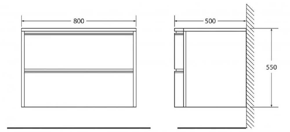 Тумба под раковину Монтаж: подвесной Размер: 80 x 50 x 55 см Ящики выдвижные: 2 С системой плавного закрывания Материал: МДФ Форма: прямоугольная Цвет: бежевый (Tortora Opaco)