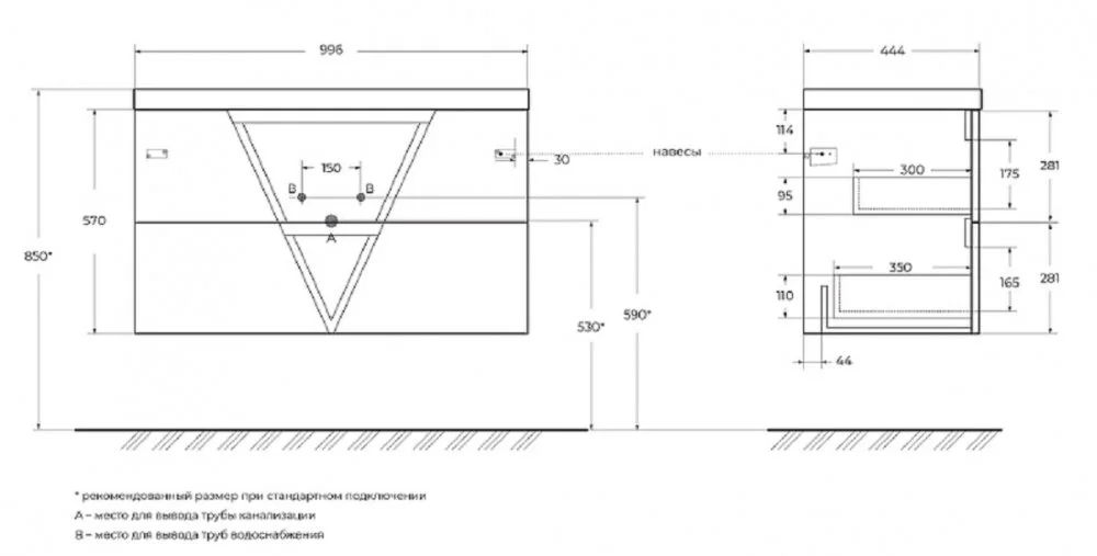 Тумба под раковину Belbagno Vittoria-1000-2C-SO-BL, 100 см, подвесная, белый