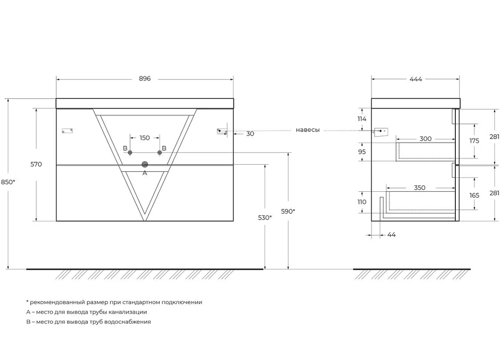 Тумба под раковину BelBagno Vittoria 90, подвесная, цвет Bianco Lucido, Vittoria-900-2C-SO-BL