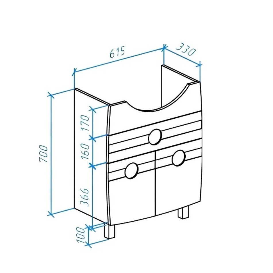 Тумба под раковину Bellezza Абрис 4639719100013, 60 см, напольная, цвет белый