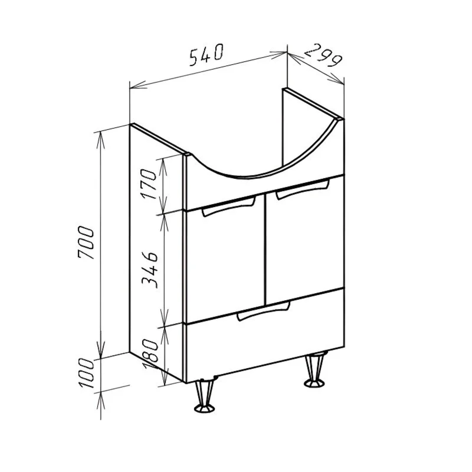 Тумба напольная Альфа 55, на ножках, два распашных фасада, один нижний выдвижной ящик