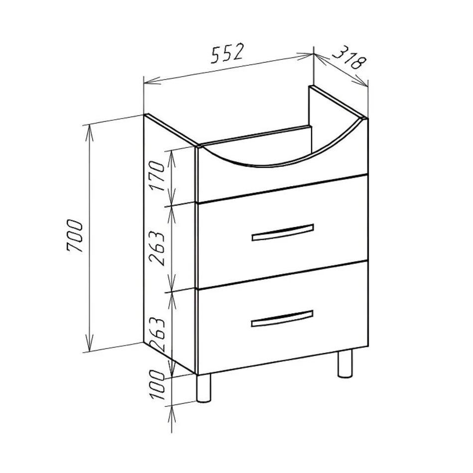 Габариты тумбы (ШхВхГ): 552х800х318 мм.