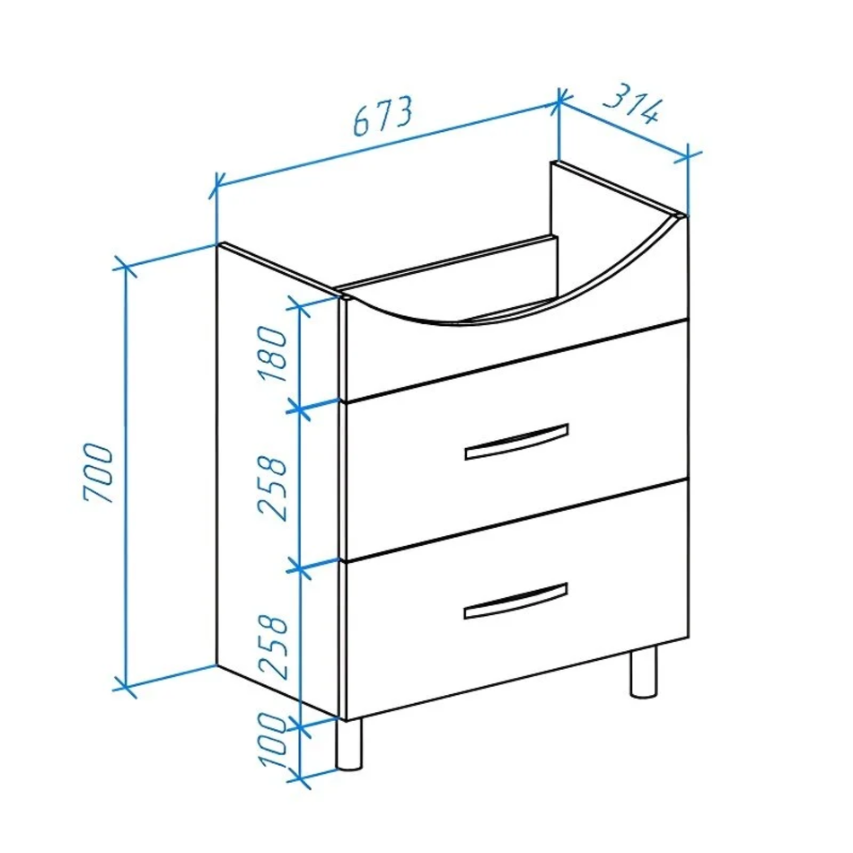 Габариты тумбы (ШхВхГ): 67,3x80x31 см.