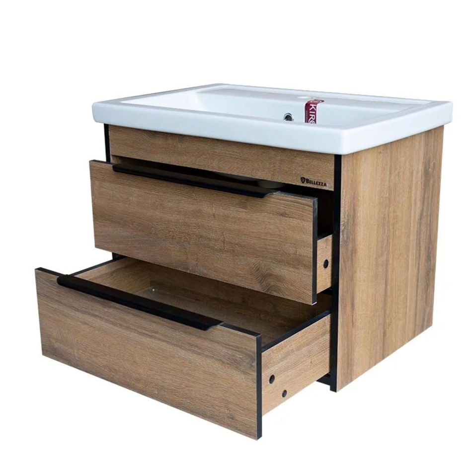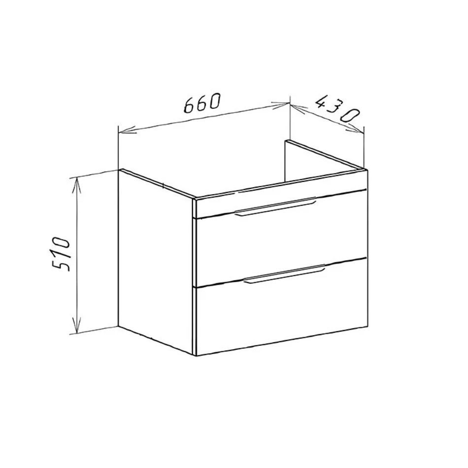 Тумба под раковину Размер: 66 x 43 x 51 см Монтаж: подвесной Ящики выдвижные: 2 Система плавного закрывания Материал: ЛДСП Форма: прямоугольная Цвет: табакко