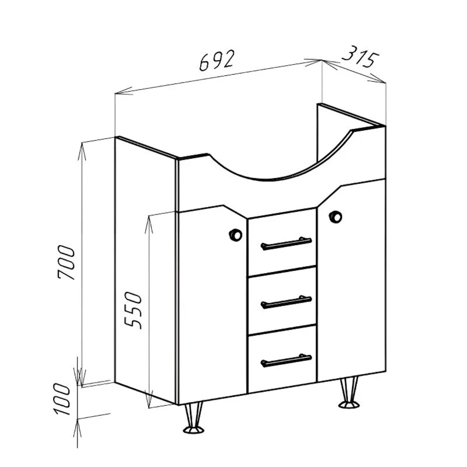 Габариты (ШхВхГ): 69.2x80x31.5 см.