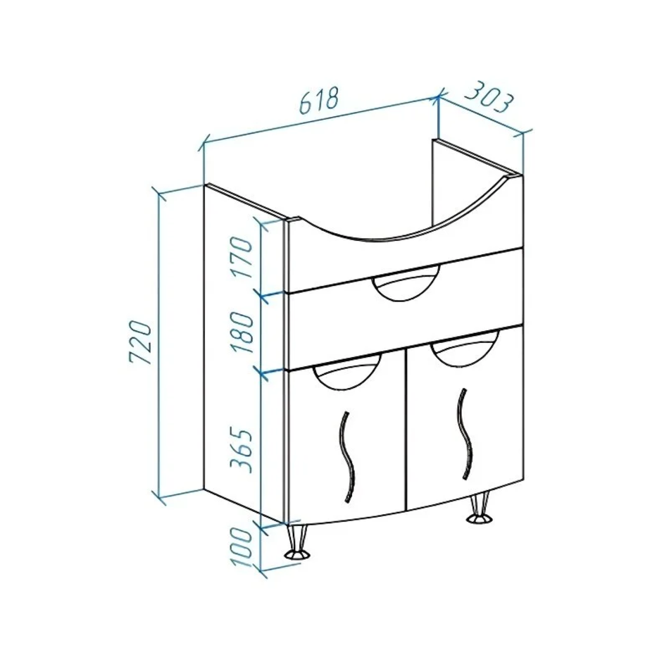Тумба под раковину Bellezza Глория, 4639510690010, 65 см, напольная, 1 ящик, белый