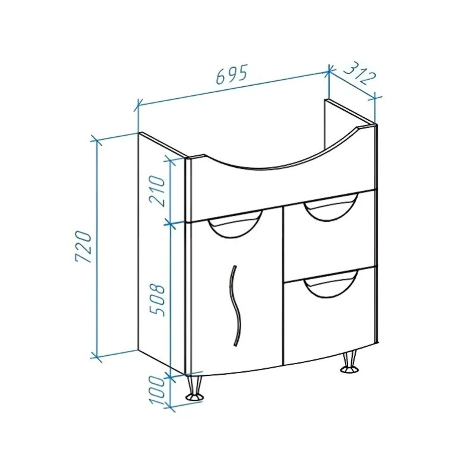 Тумба под раковину Bellezza Глория, 4639512080017, 70 см, напольная, 2 ящика, цвет белый
