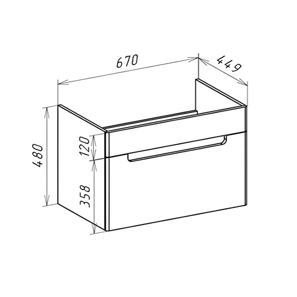 Тумба под раковину Ширина: 67 см Высота: 48 см Глубина: 44,9 см Монтаж: подвесной Ящики выдвижные: 1 Материал: влагостойкий ЛДСП, МДФ Форма: прямоугольная Цвет: белый