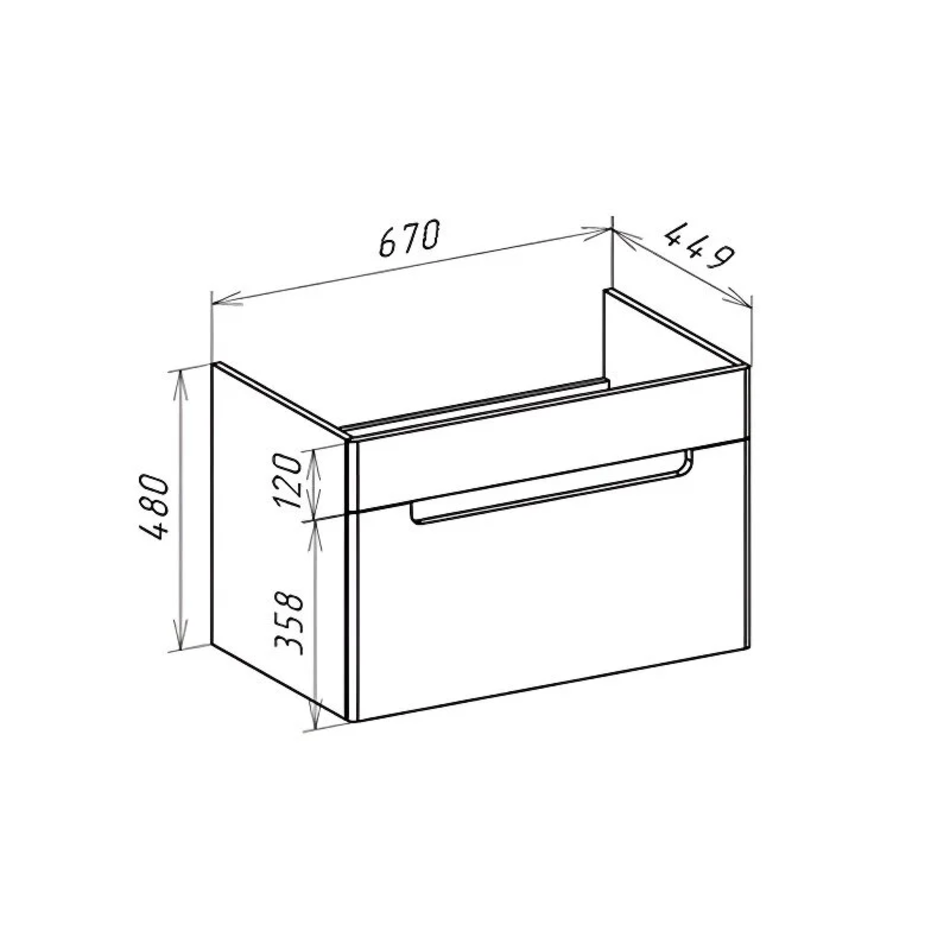 Тумба под раковину Ширина: 67 см Монтаж: подвесной Ящики выдвижные: 1 Система плавного закрывания Материал: МДФ Форма: прямоугольная Цвет: дуб светлый