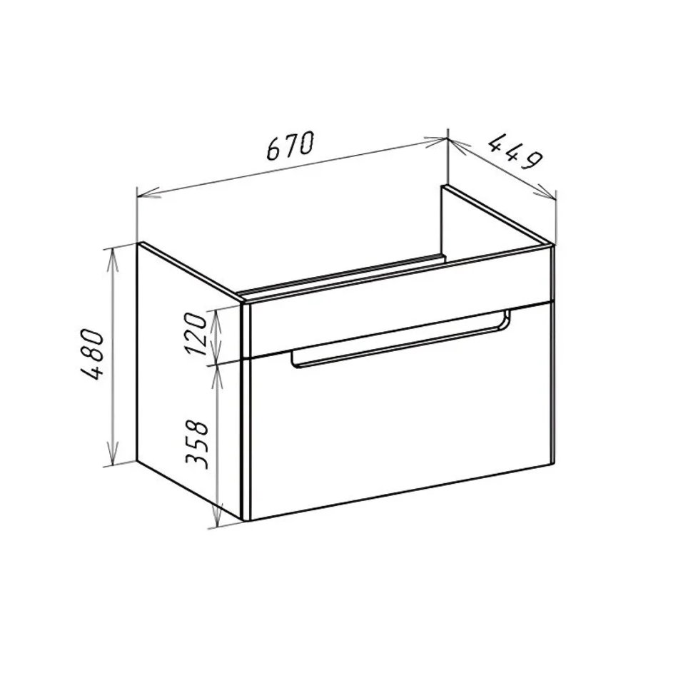 Тумба под раковину Ширина: 67 см Монтаж: подвесной Ящики выдвижные: 1 Система плавного закрывания Материал: МДФ Форма: прямоугольная Цвет: скала серая