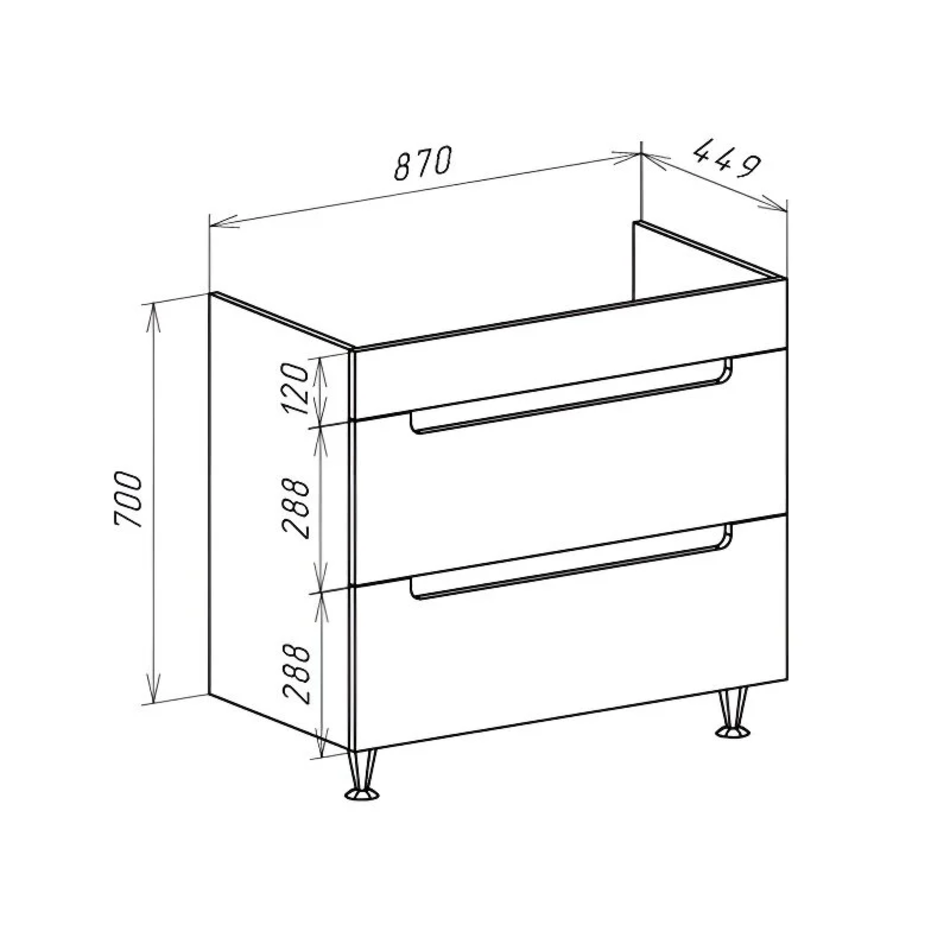 Тумба под раковину Ширина: 87 см Монтаж: подвесной Ящики выдвижные: 2 Система плавного закрывания Материал: МДФ, ЛДСП Форма: прямоугольная Цвет: белый