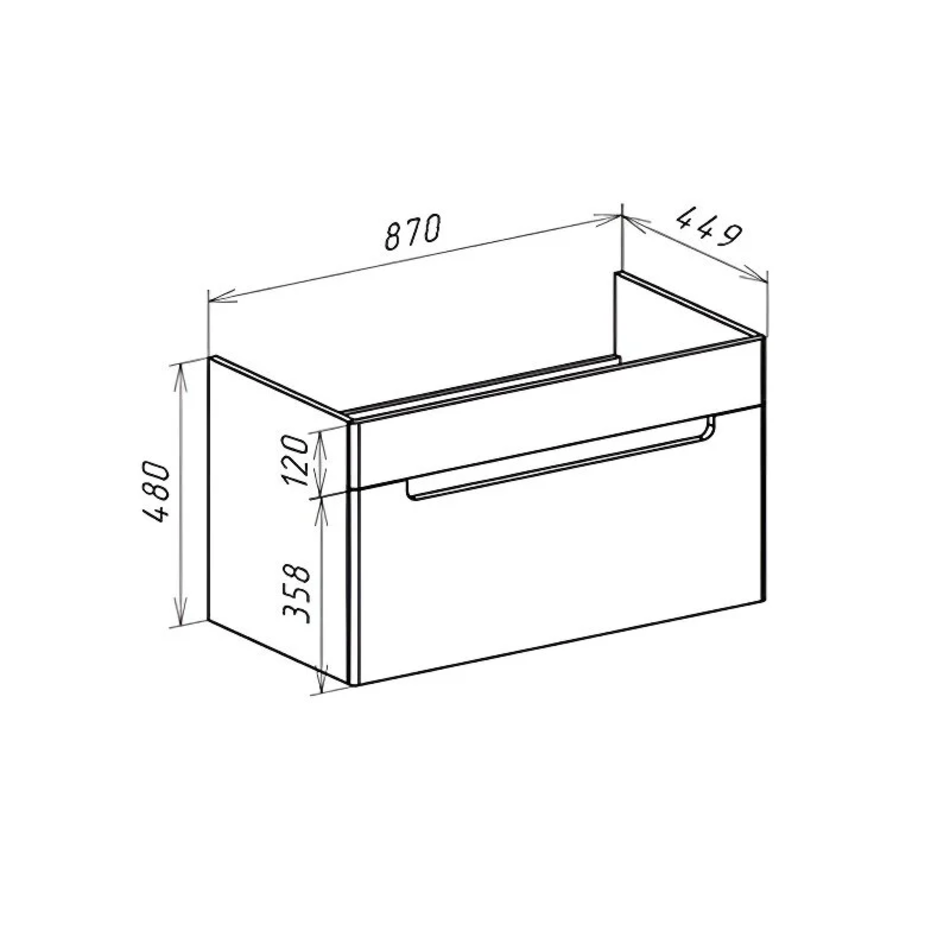 Тумба под раковину Ширина: 87 см Монтаж: подвесной Ящики выдвижные: 1 Система плавного закрывания Материал: МДФ, ЛДСП Форма: прямоугольная Цвет: белый